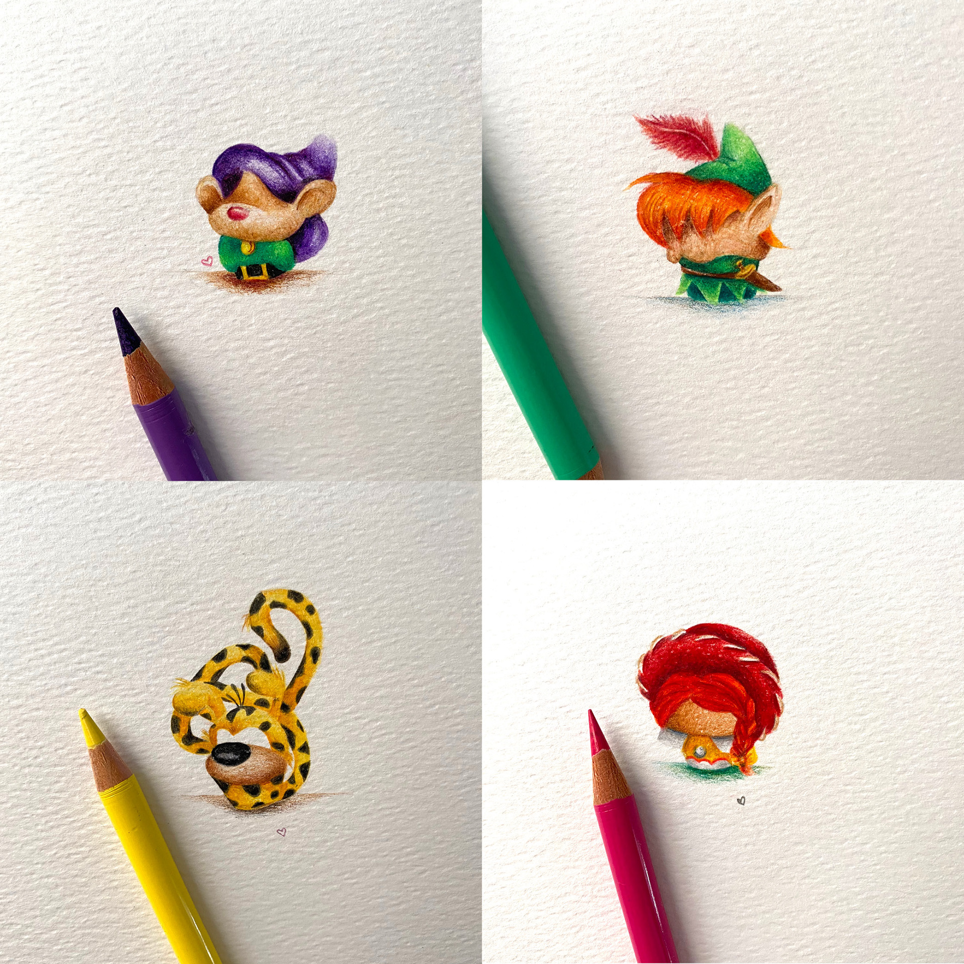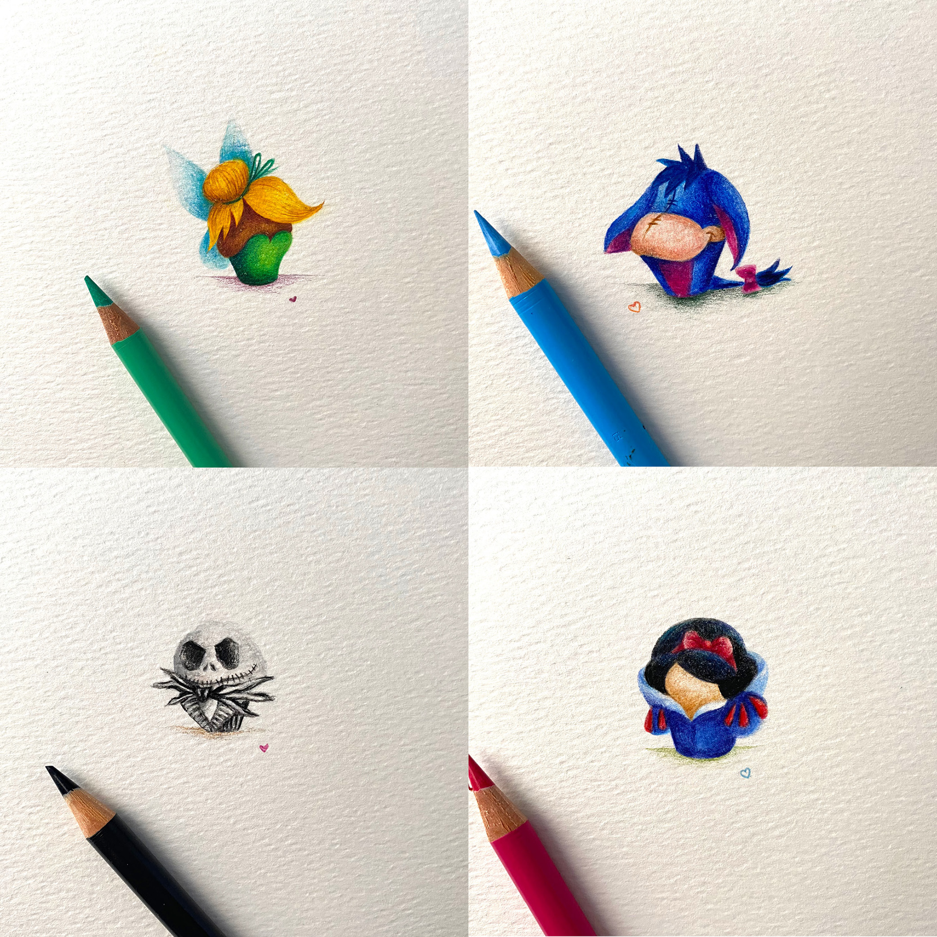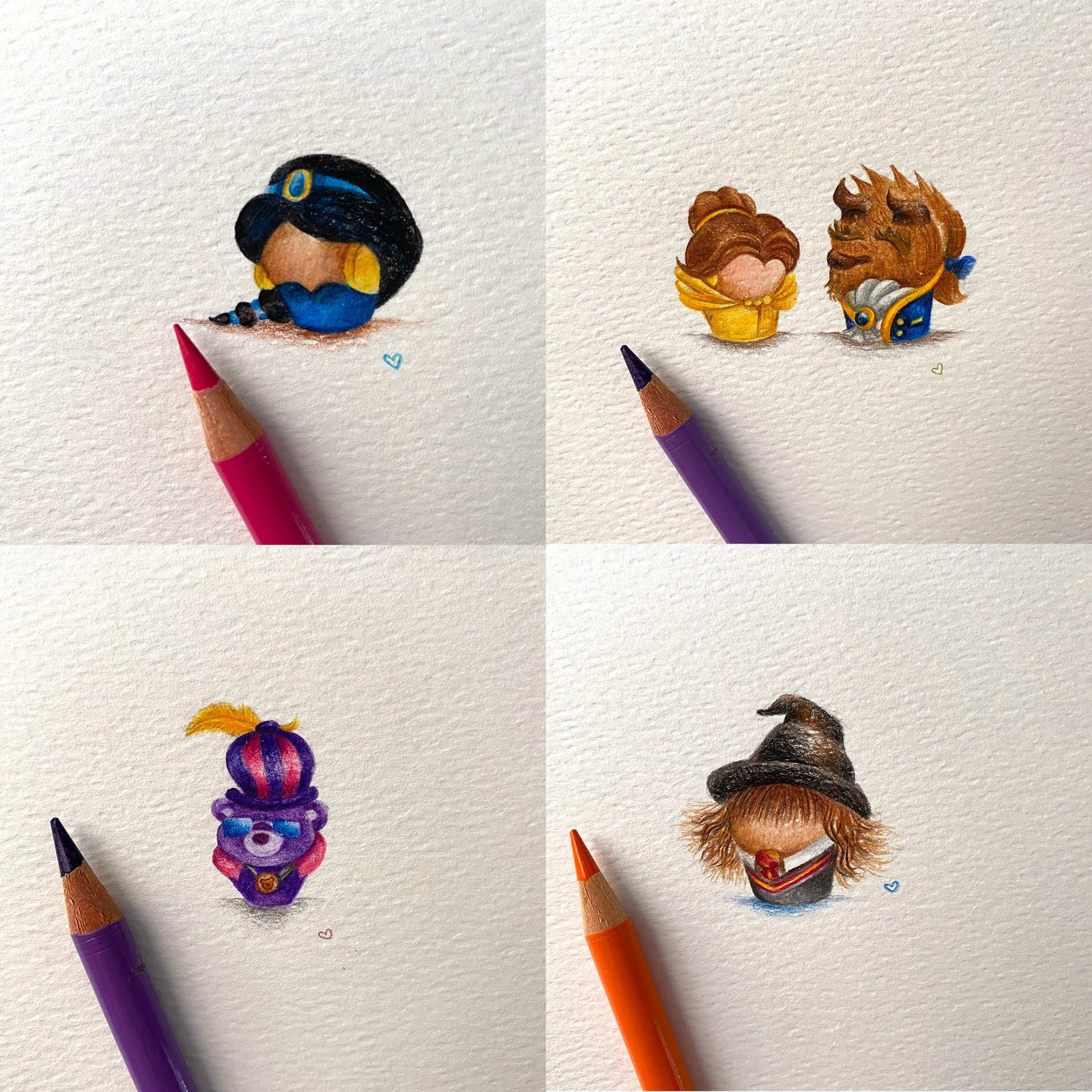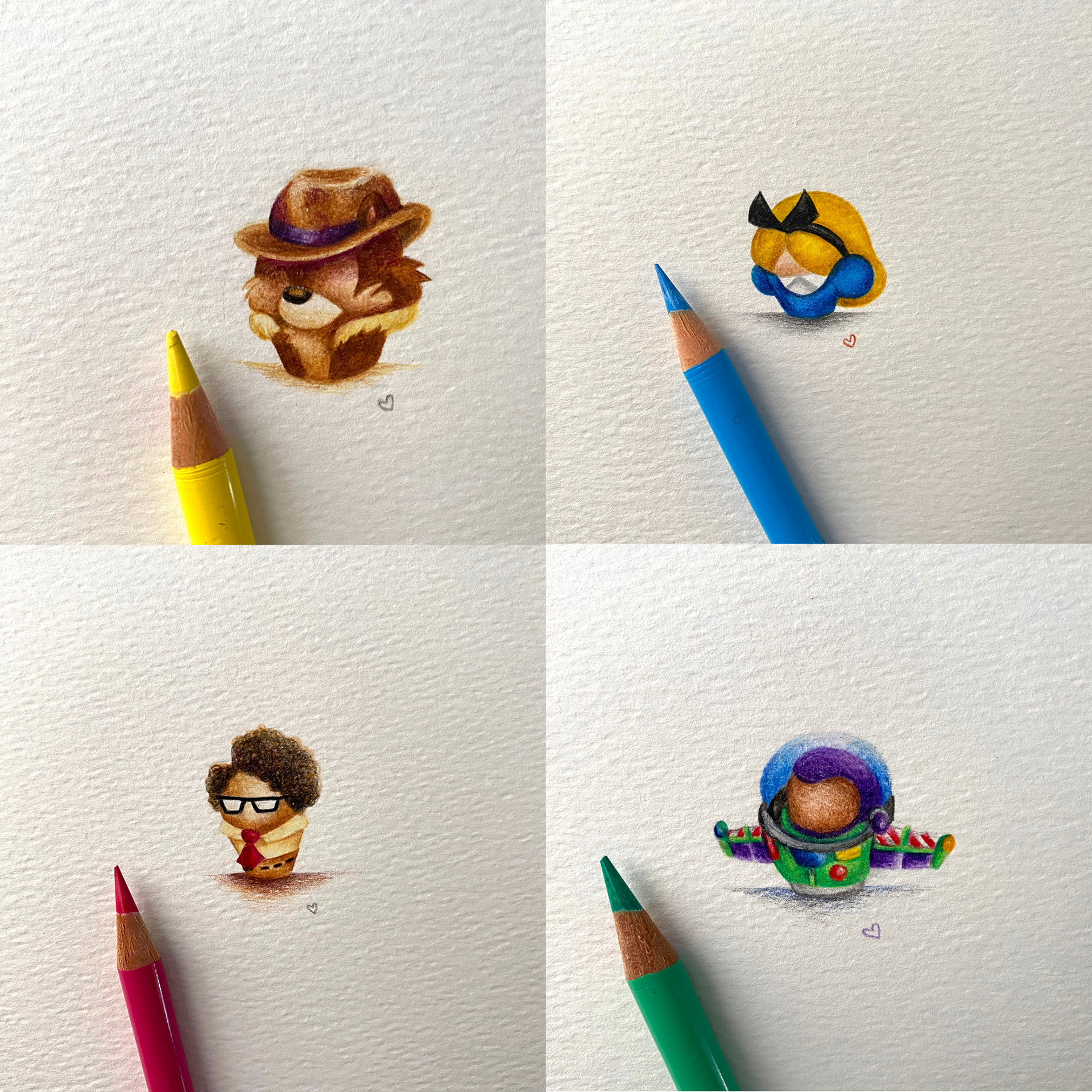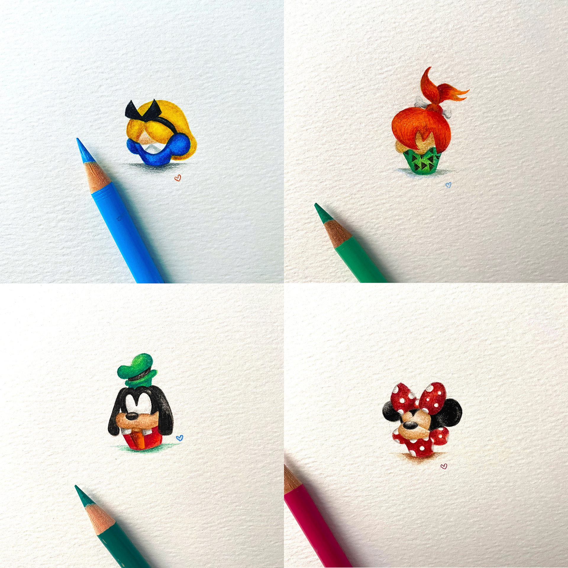 Hand drawn pencil crayon illustrations of pop culture icons turned into cupcakes.